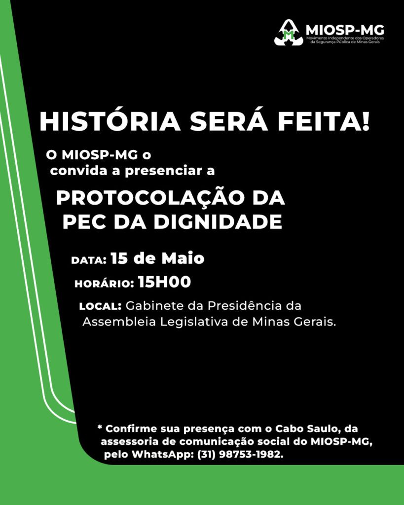 Por isso, convidamos todos aqueles que valorizam a segurança, a justiça e o bem-estar da sociedade a se juntarem a nós nessa causa. É hora de reconhecer e valorizar o trabalho árduo e essencial dos operadores da segurança pública em Minas Gerais. Juntos, podemos promover a dignidade salarial que eles merecem. Unidos pela segurança, pela justiça e pela valorização profissional.